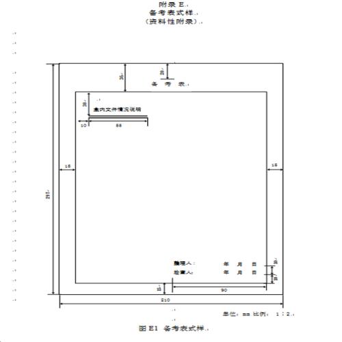 备考表置于盒内文件之后,项目包括盒内文件情况说明、整理人、整理日期、检查人、检查日期(见附录E)。